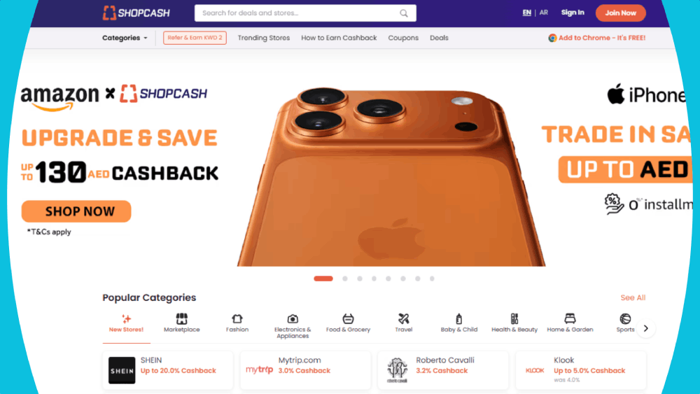 ShopCash is a real cashback and rewards site that is targeting shoppers in the United Arab Emirates, Saudi Arabia, Kuwait, and Egypt.